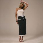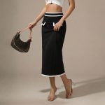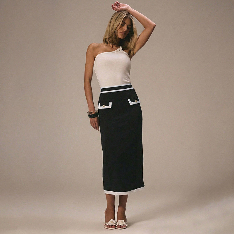 High-waisted Figure-flattering Color-block Pencil Skirt