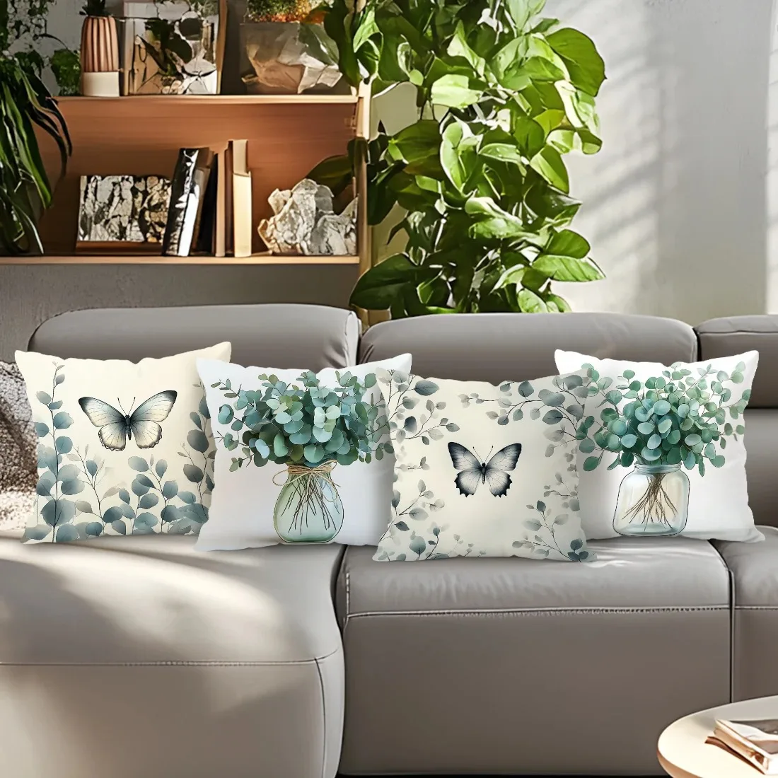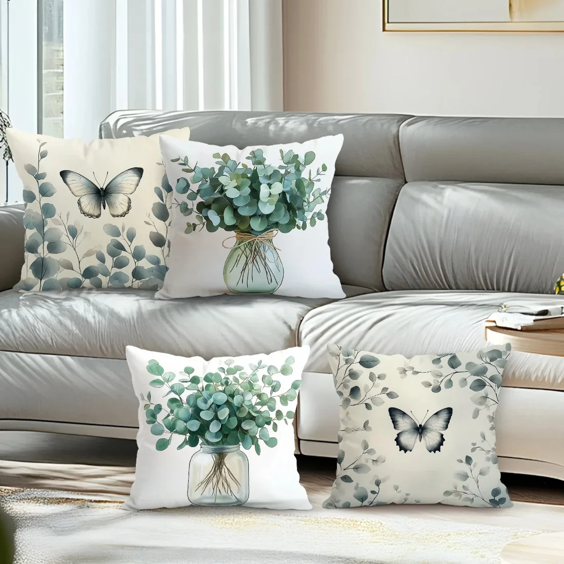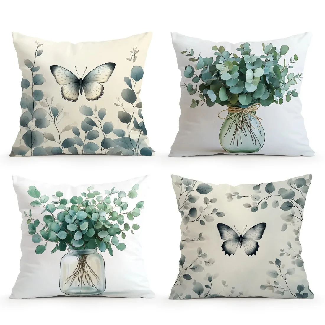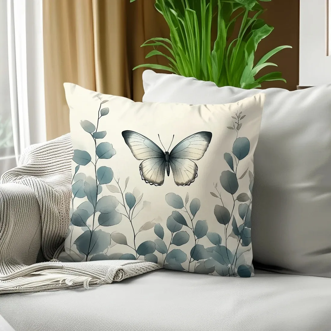 Home Decor Butterfly & Eucalyptus Patterned Pillow Covers Pattern Cushion Cover Suitable for Sofa Bedroom Car Pillow Cover