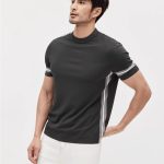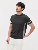 Ice Silk Men’s Spliced Stripe Sport Short Sleeve T-shirt Summer New