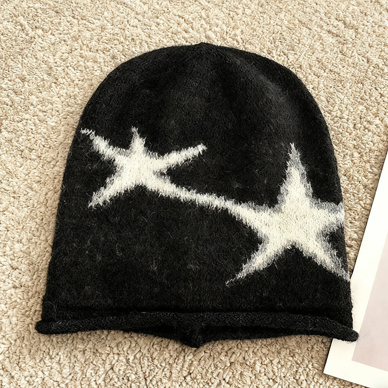 Japanese-style Harajuku Street-styled Edgy Star-knit Beanie