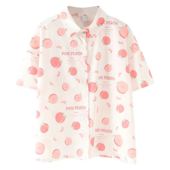 Joinyouth Peach Printed Shirt Japanese Preppy Style Blouses Women Blusas Mujer De Moda Short Sleeve Chiffon Blouse Tops