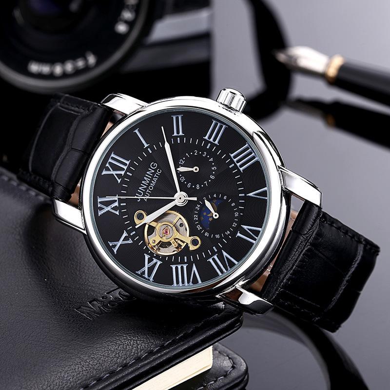 JUNMING Roman Characters Men’s Automatic Mechanical Watch Waterproof