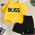 Kids BOSS Letter Print Summer Set – Short Sleeve T-Shirt & Shorts Casual Outfit for Boys & Girls