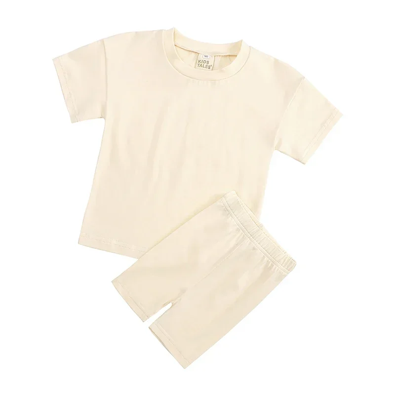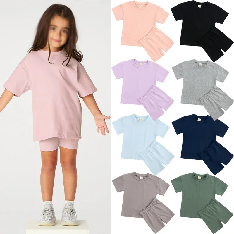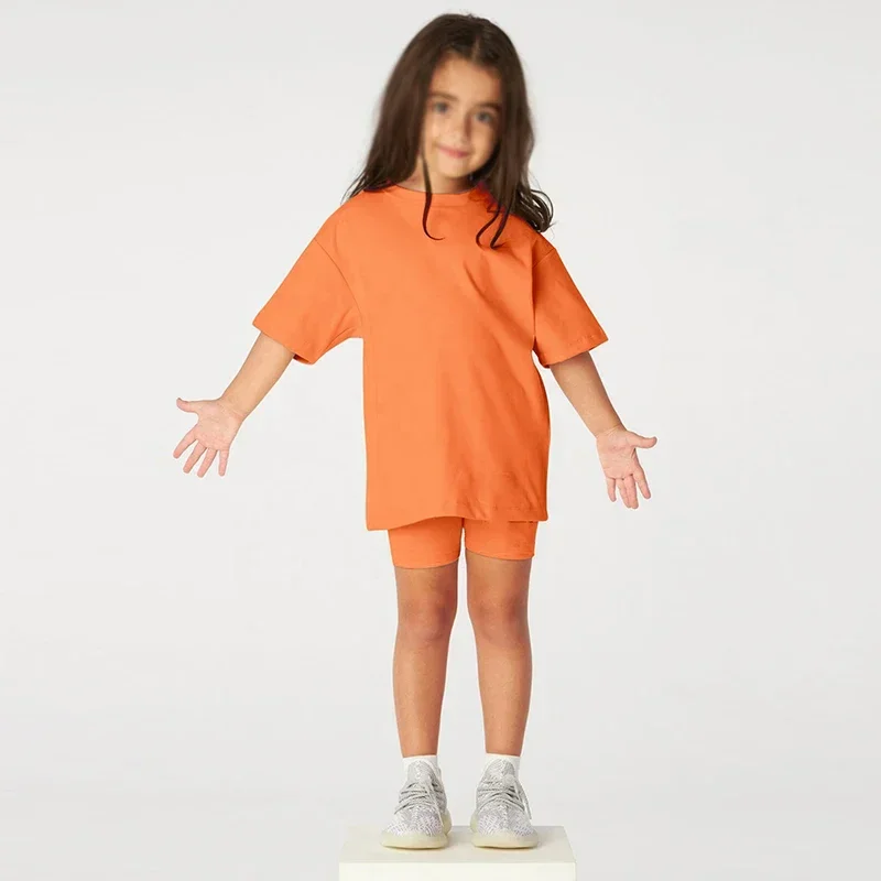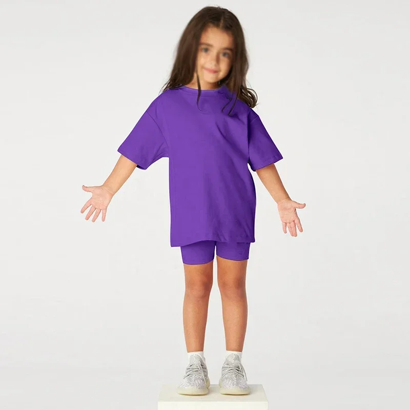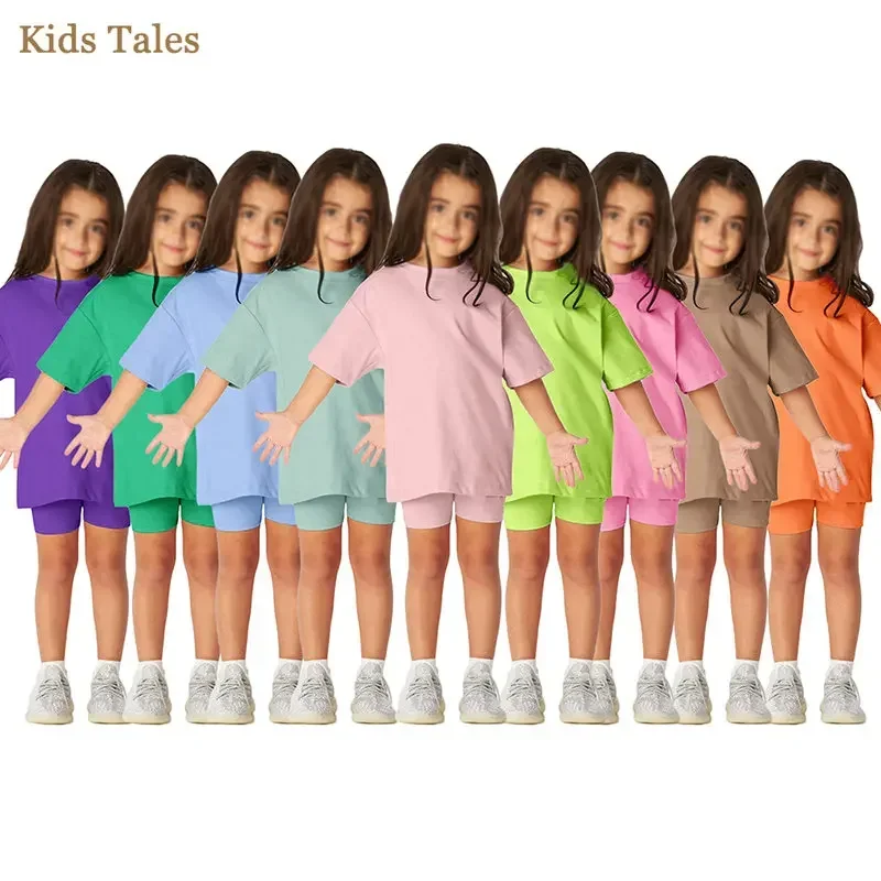Kids’ Summer Cotton 2-Piece Set – Oversized Short Sleeve T-Shirt & Cycling Leggings for Toddlers
