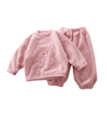Kids’ Velvet Pajama Set – Warm Pure Color Sleepwear for Autumn/Winter