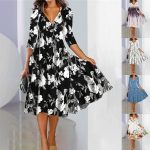 Knitted Loose Digital Positioning Printed V-neck Dress