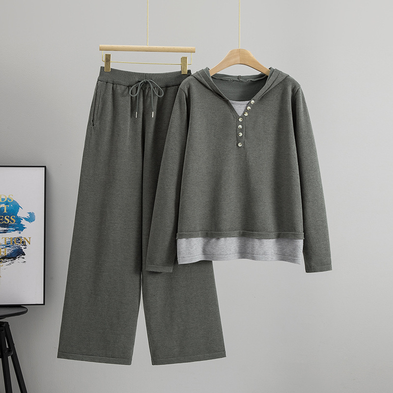 Knitted Sweater And Wide-leg Pants Casual Sportswear Set
