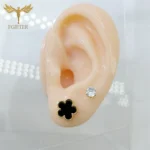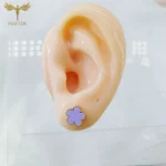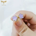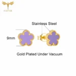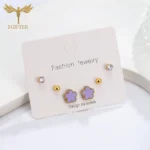 Korean Elegant Purple Flower Earrings Women Stainless Steel Jewelry Gold Plated Stud Earrings Set 4mm Ball Zircon Ear Accessory
