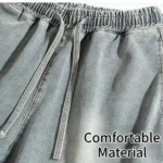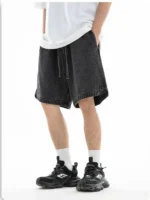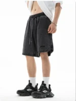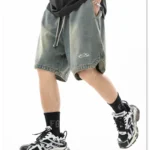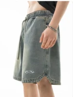 Korean Men’s Hem Triangle Split Design Denim Shorts Men’s Summer Beauty Embroidery Loose Five Pants