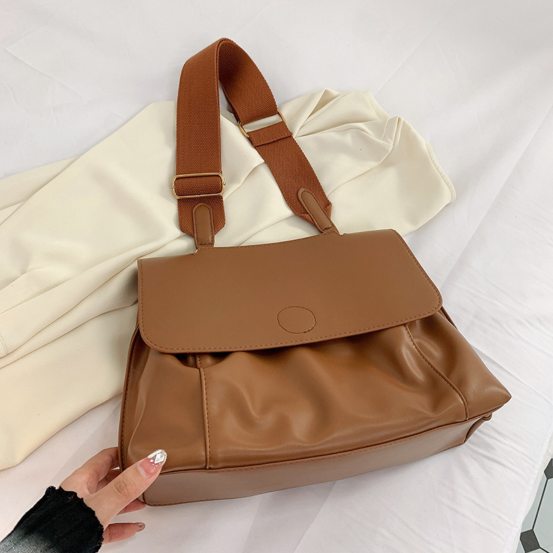 Korean Style Casual Large Capacity Simple Tote Women’s Pleated Soft European Broadband Shoulder Messenger Bag