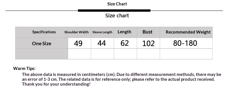 Note: 1. Asian sizes are 1 to 2 sizes smaller than European and American people. Choose the larger size if your size between two sizes. Please allow 2-3cm differences due to manual measurement. 2. Please check the size chart carefully before you buy the item, if you don’t know how to choose size, please contact our customer service. 3.As you know, the different computers display colors differently, the color of the actual item may vary slightly from the following images.