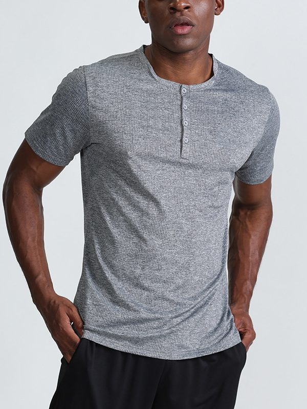 Korean Style Men Summer T-Shirt Man Short Sleeved Waffle Solid T-Shirt Color Casual Tee Round Men’s Round Neck Fashion Top