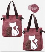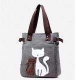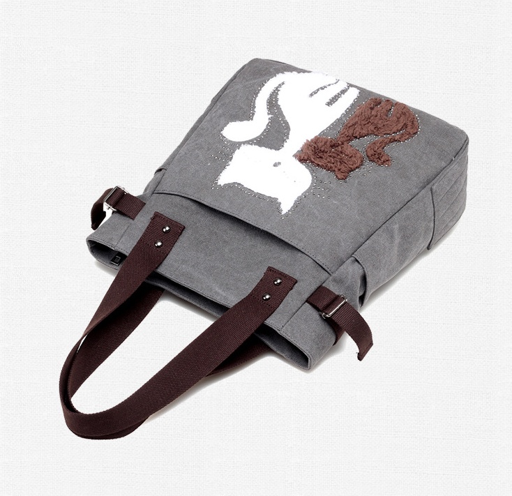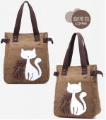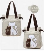 KVKY Women Canvas Bag Handbag Famous Brand Shoulder Bags Femal Canvas Bags with Cute Plush Cat Appliques Beach Bag Sac A Main