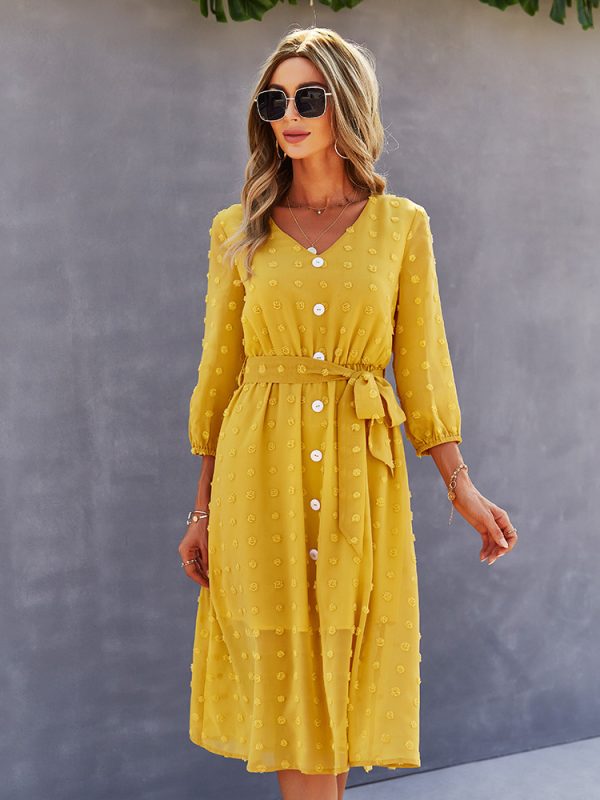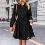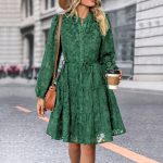 Lace Tied Long Sleeve Dress Fashion Medium Length Dresses Womens Clothing