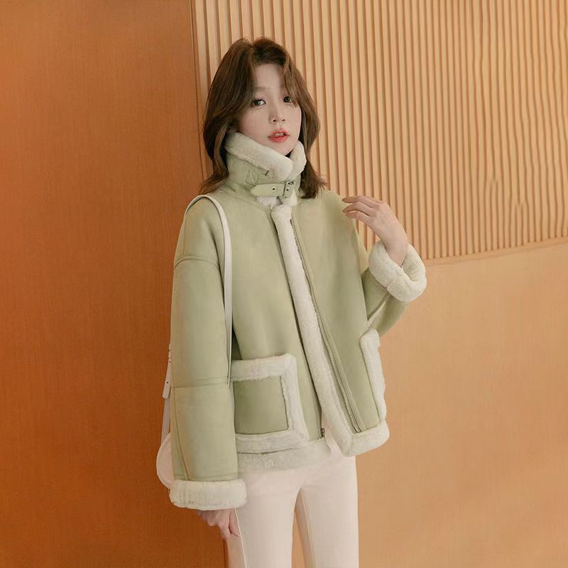 Lambswool Fashion Leather Coat Patchwork Short Section Women
