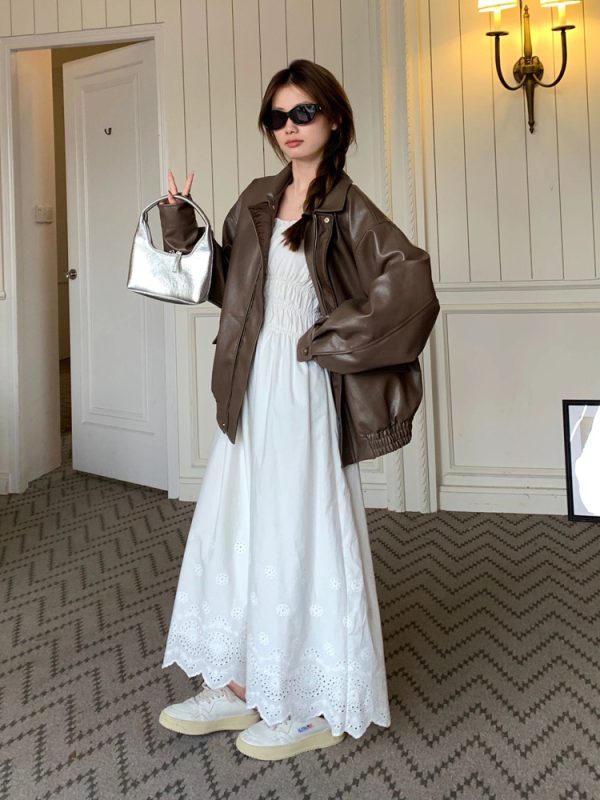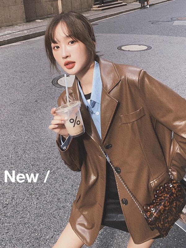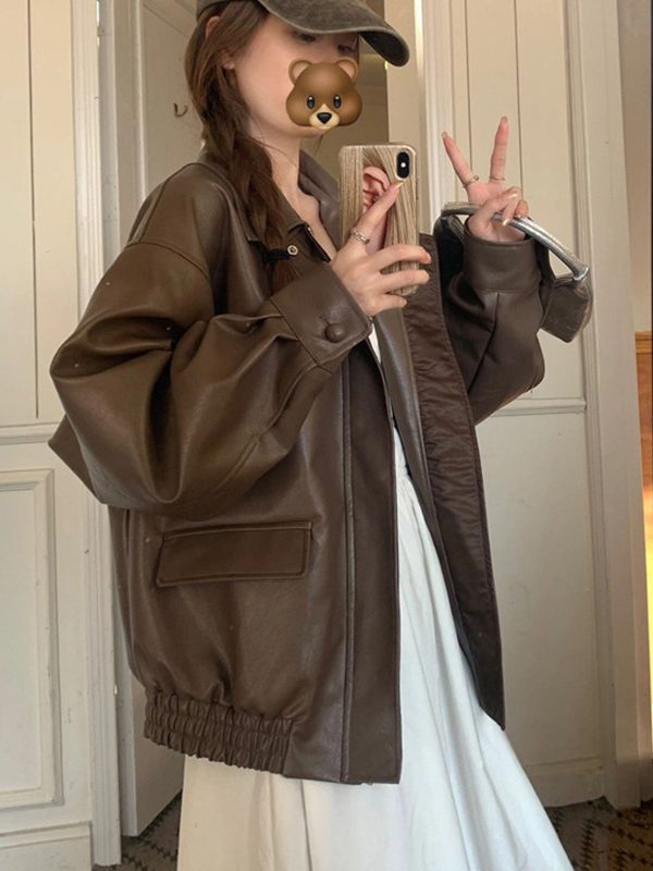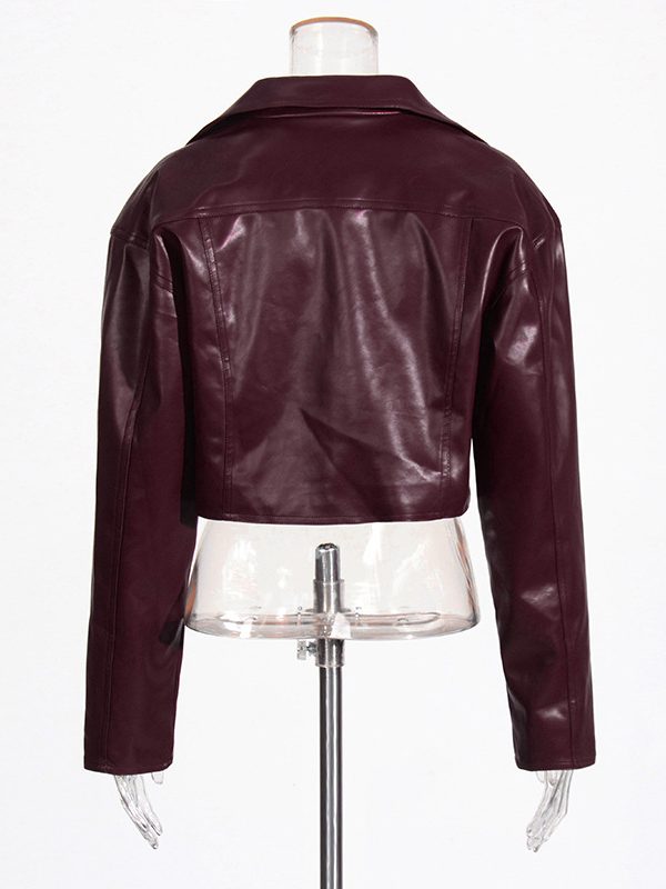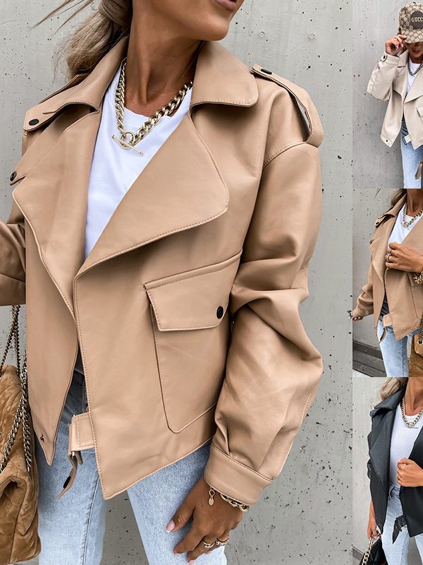 Lapel Side Zipper Motorcycle Leather Short PU Leather Jacket Women
