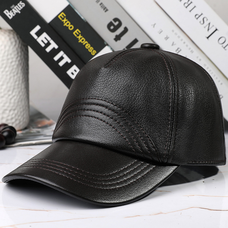Leather Hat Autumn And Winter Men’s Sheepskin Outdoor Sun-proof Leather Baseball Cap
