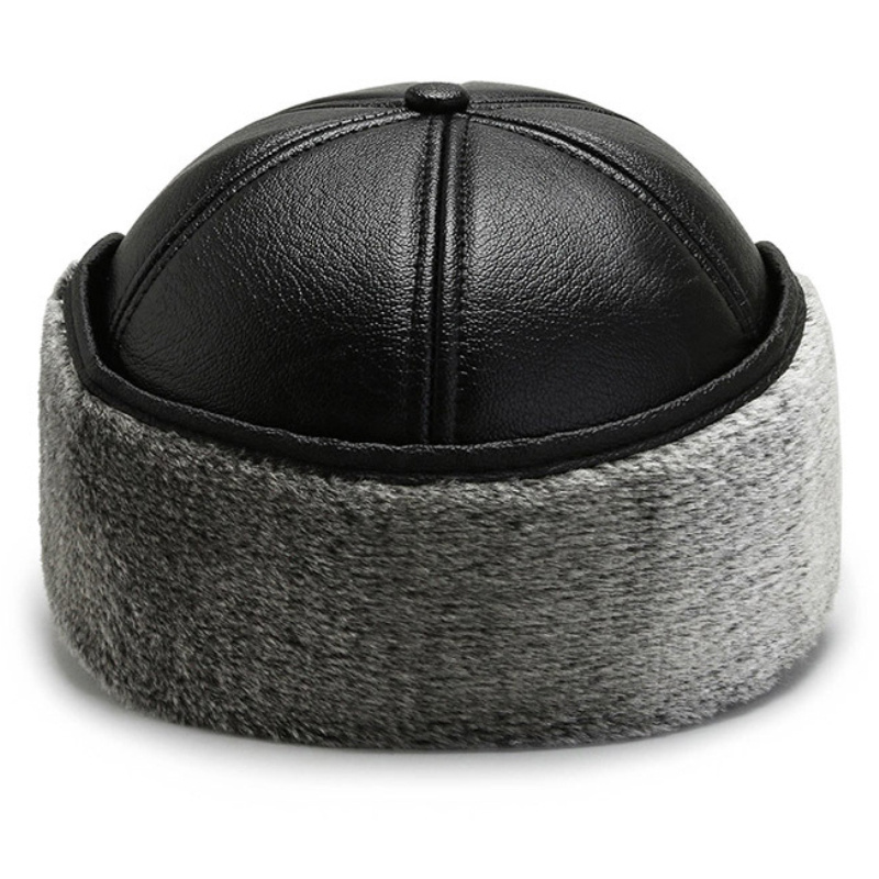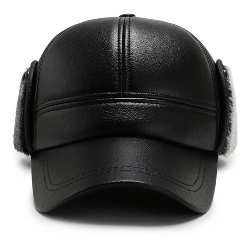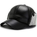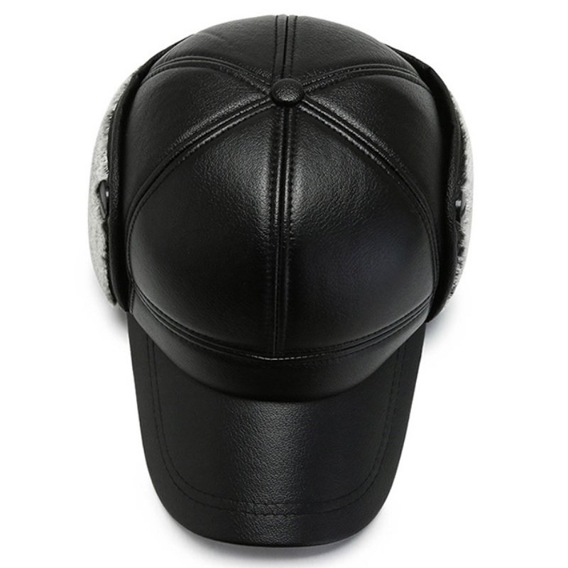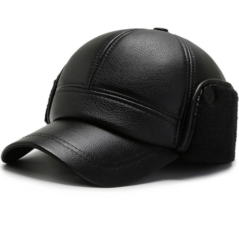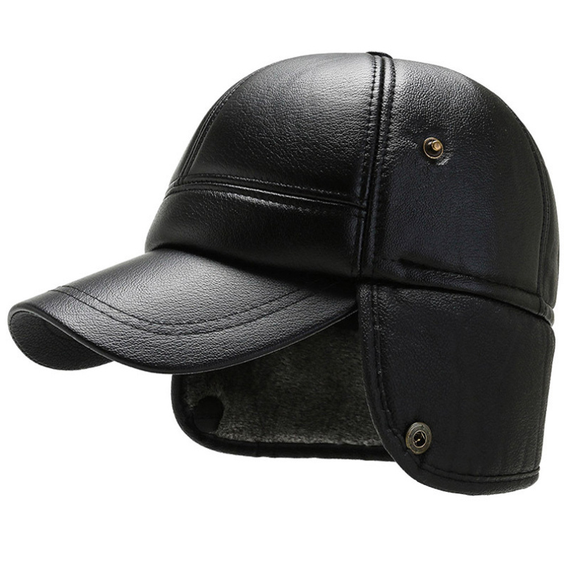 Leather Hat Men’s Ear Protection Warm Duck Cap Pu Leather Warm Cotton
