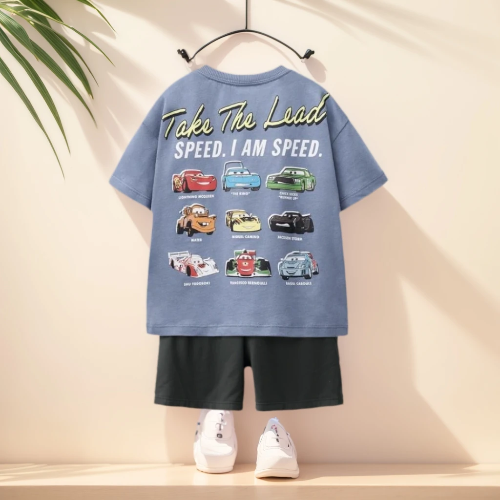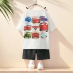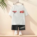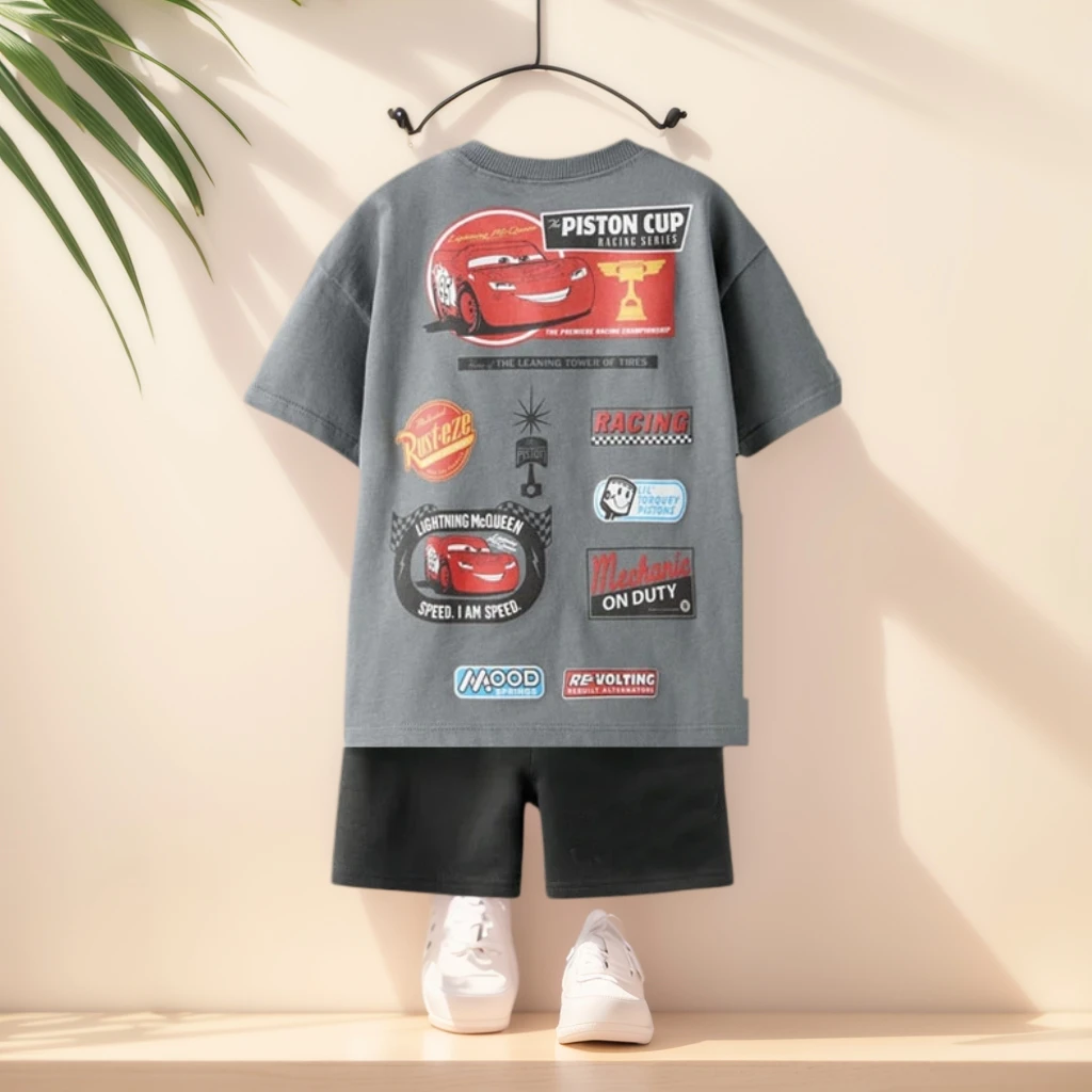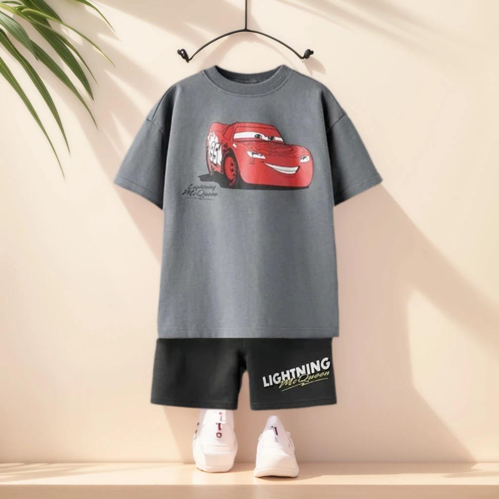 Lightning McQueen Kids’ Summer 2-Piece Set – Cotton T-Shirt & Shorts Sports Outfit for Boys