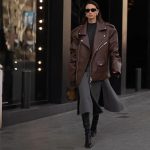 Locomotive Style Zipper Brown Short Suit Leather Coat Women