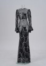 Long Sleeve Round Neck Slim-fit Sheath Sequined Banquet Fishtail Evening Dress
