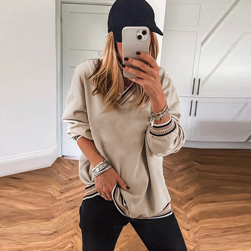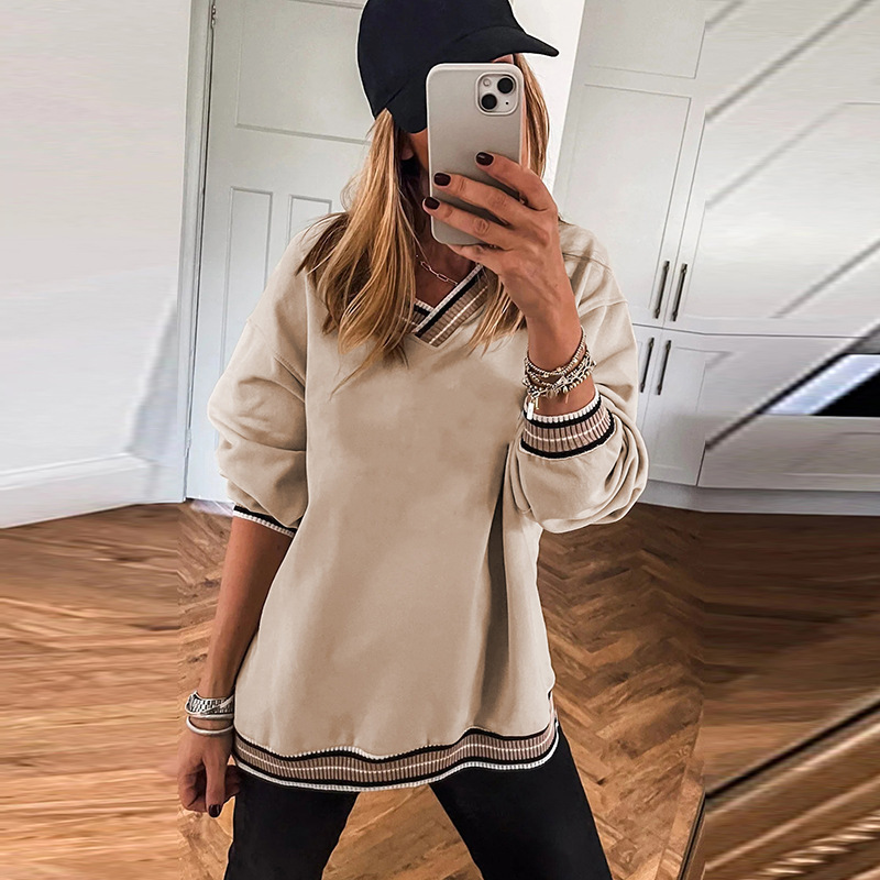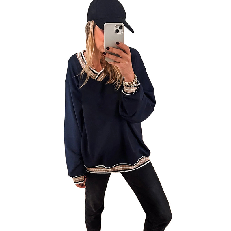 Loose Casual Style Contrast Color Trim Sweater