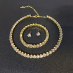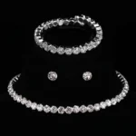 Luxury Zircon Crystal Jewelry Set for Women – Silver Bracelet, Stud Earrings & Necklace for Wedding Party