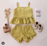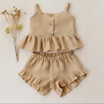 Ma Female Baby Suit Summer Sling Top Four-corner Ruffled Shorts Girls Two-piece Infant Clothing