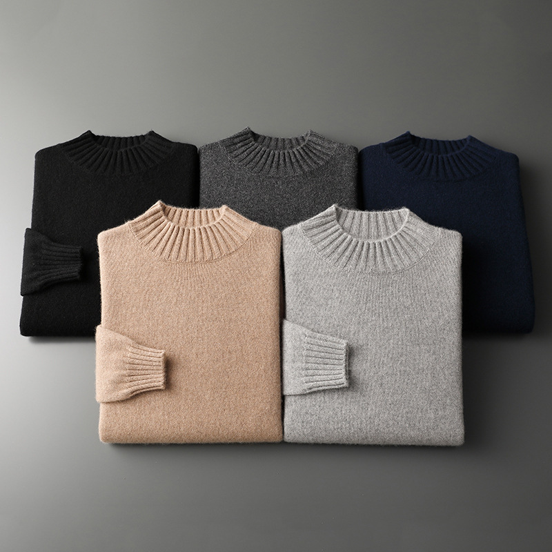 Men’s Business-Casual Solid-Color All-Match Sweater With A Half-High Neck