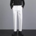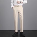 Mens Casual Korean-Style Trendy Wrinkle-Resistant Straight-Tailored Pants