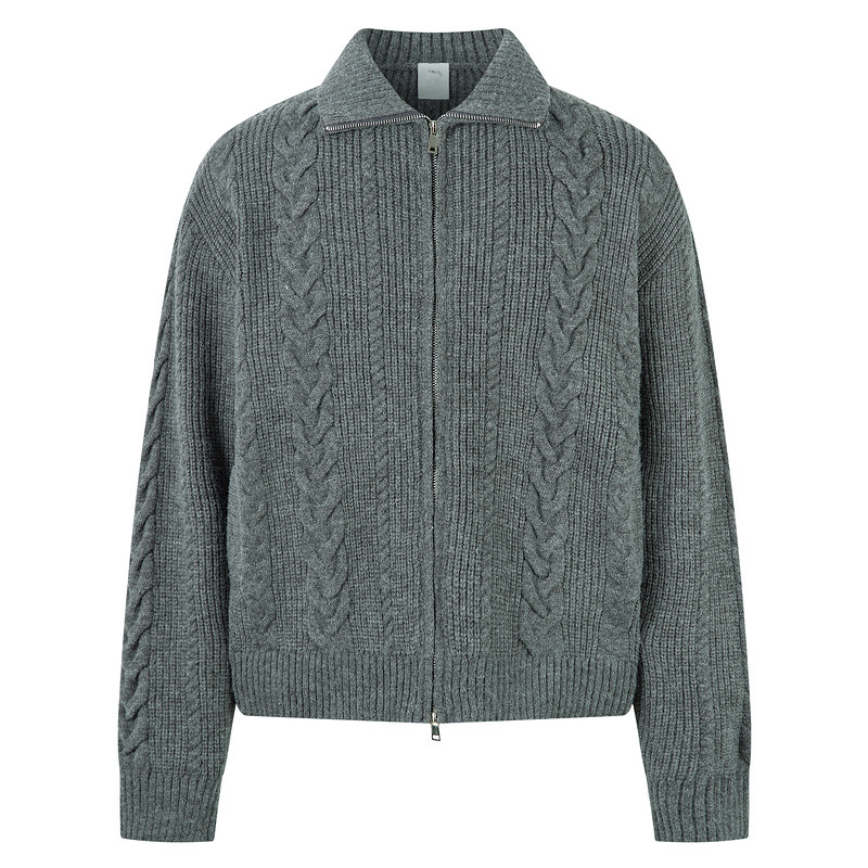 Mens Chunky-Knit Cable-Pattern Cardigan With Zipper