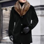Mens Coat With A Contrasting Fur-trimmed Wool Collar