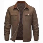 Men’s Cotton-padded Clothes Long Sleeve Polo Collar Solid Color Warm Loose Casual