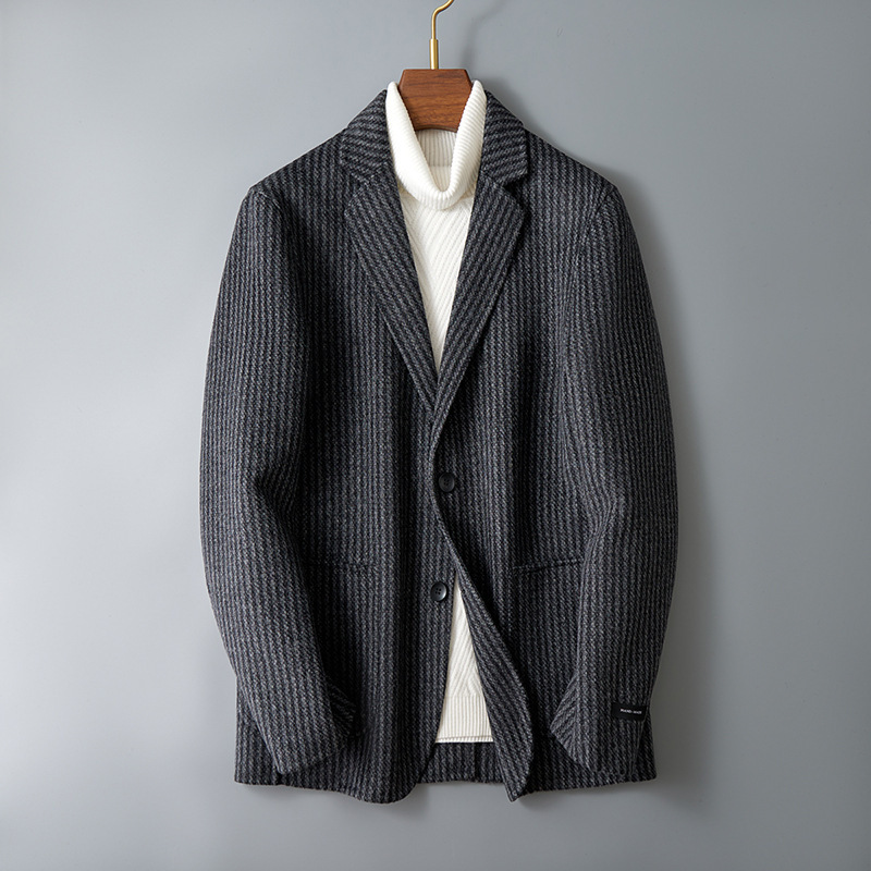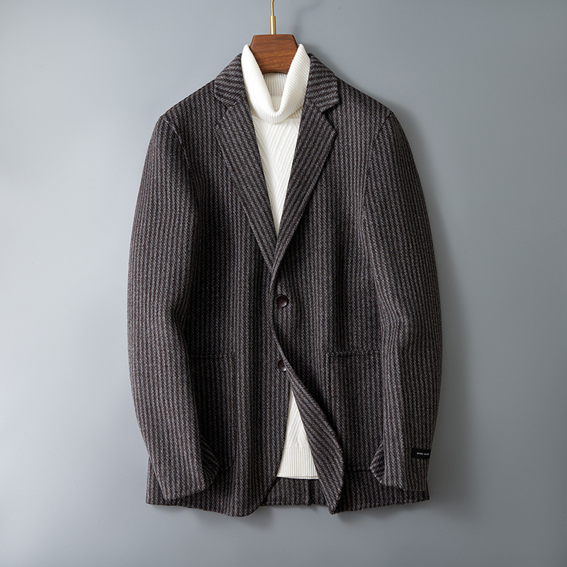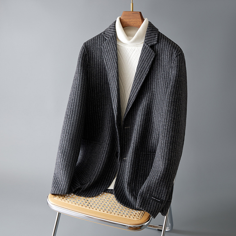 Men’s Double-sided Wool Jacket Striped Suit Jacket