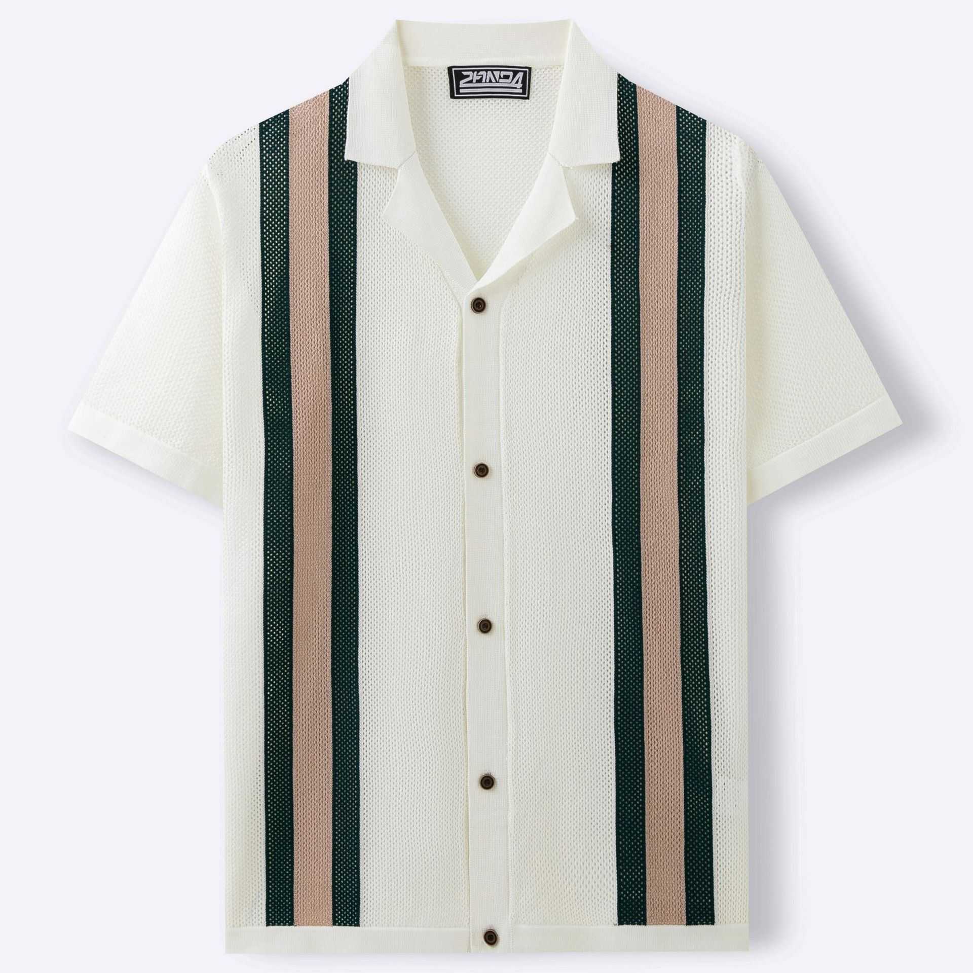 Men’s Fashion Cuban Collar Short Sleeve Knitted Cardigan