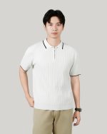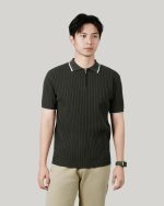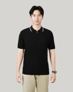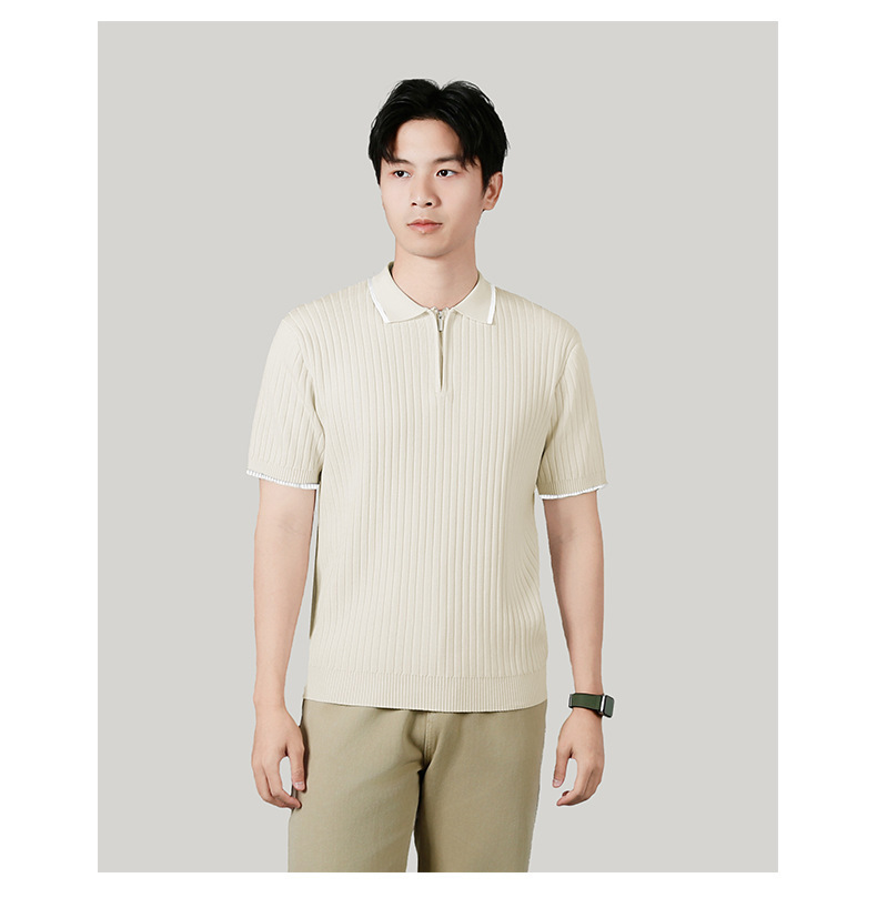 Men’s Half-zip Ice Silk Knitted Lapel Vertical Striped Top