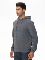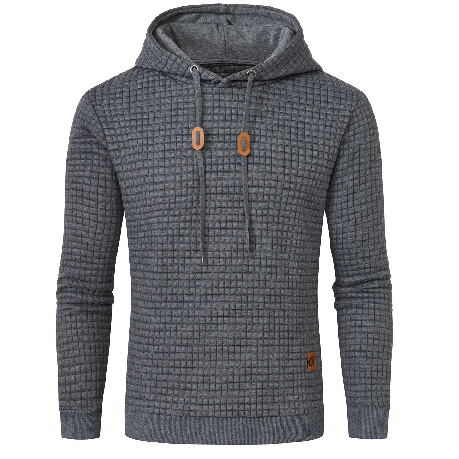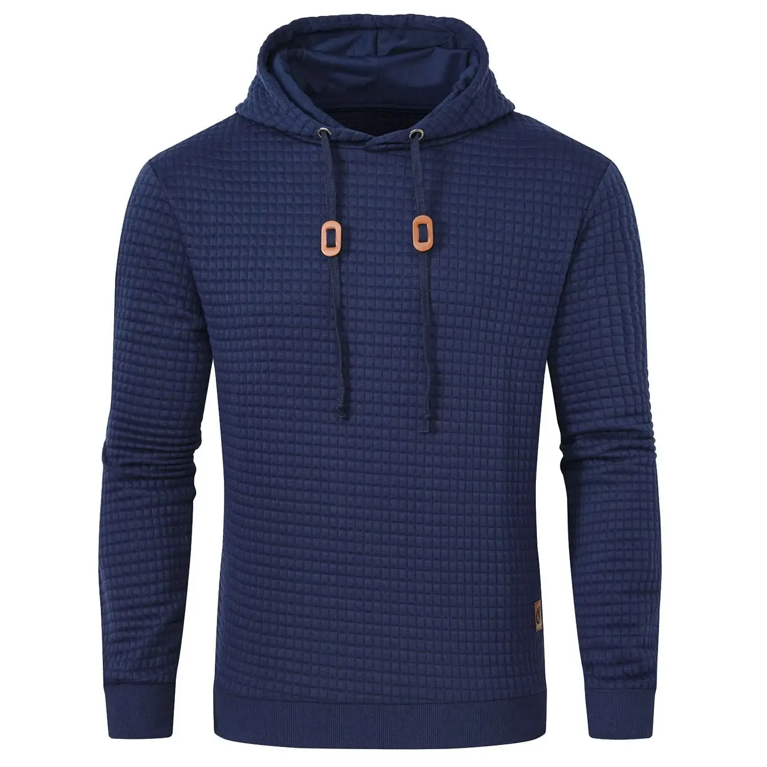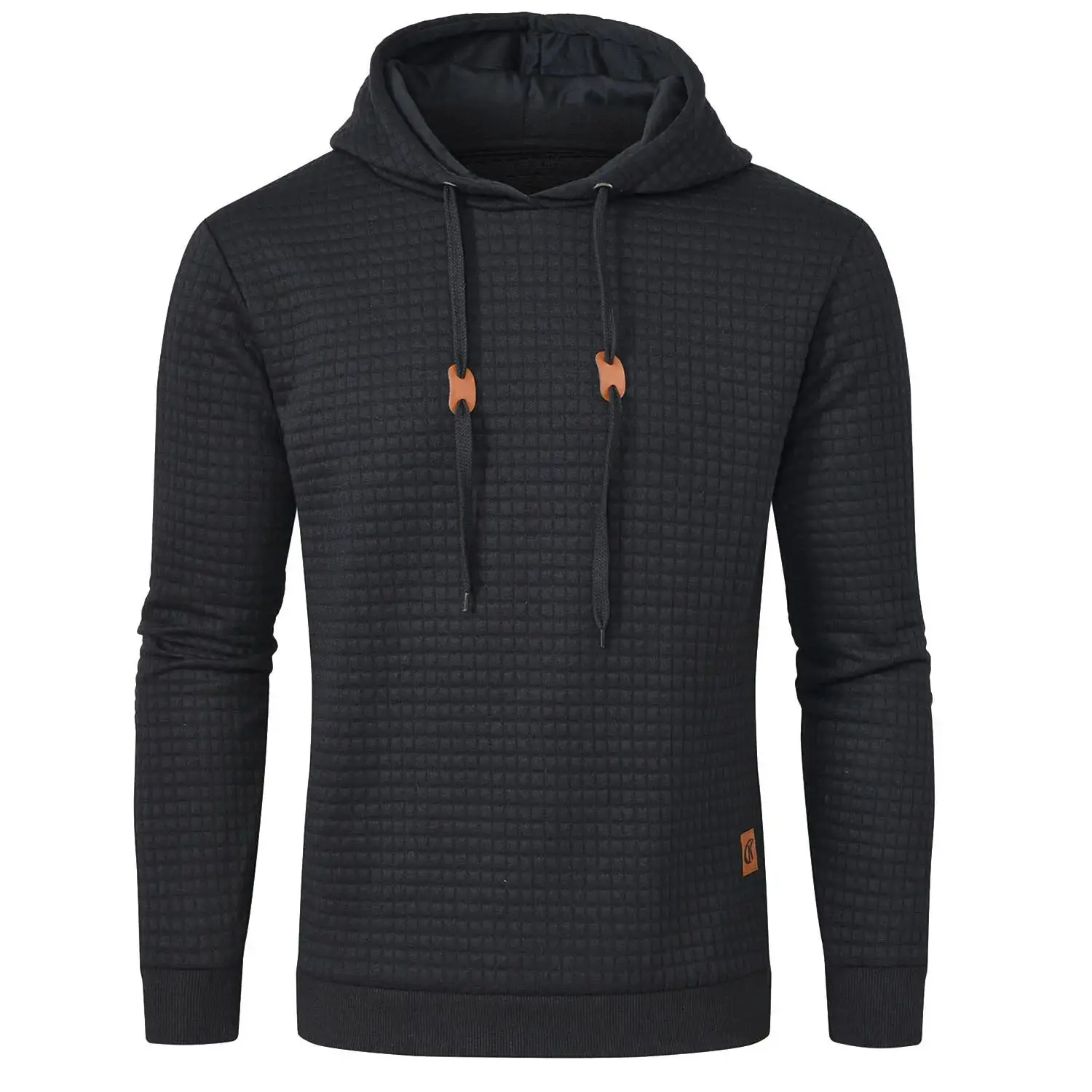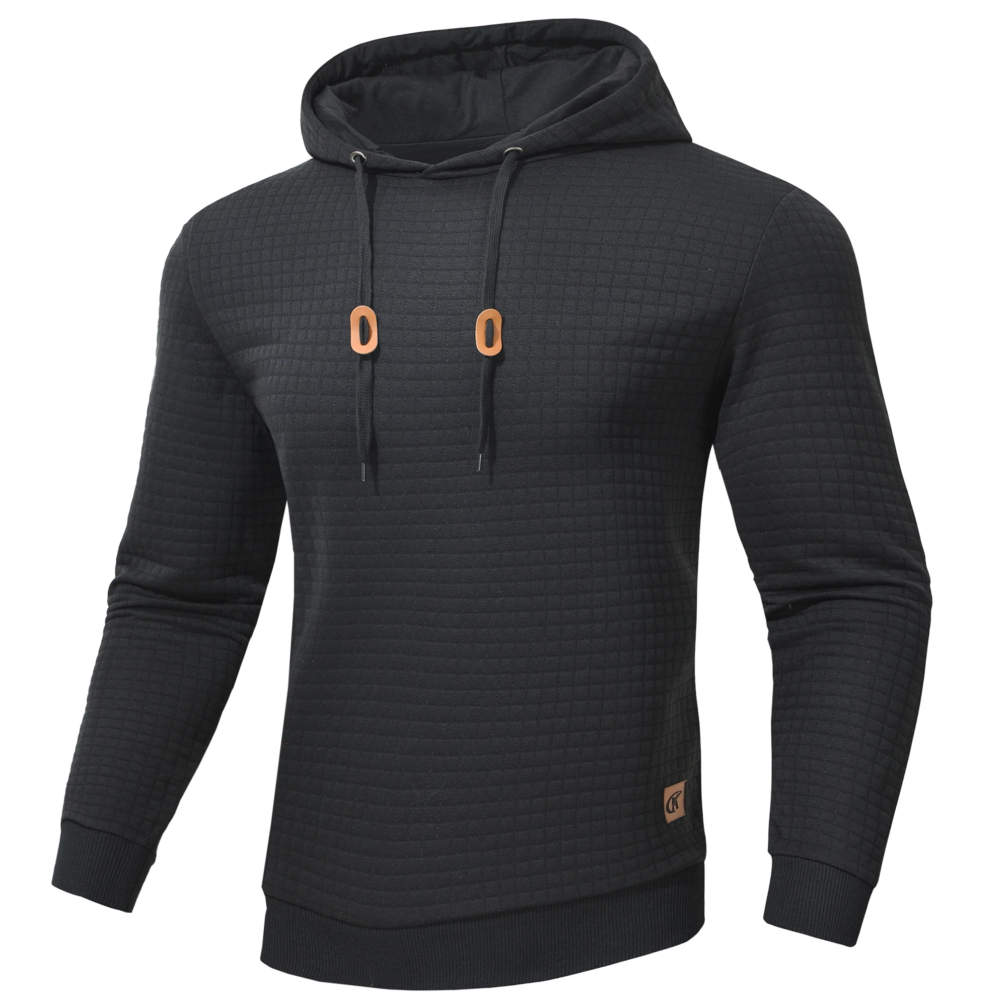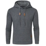 Men’s Long Sleeve Plaid Jacquard Hoodie, Drawstring Pullover Streetwear Sweatshirt Tracksuit