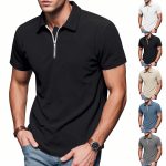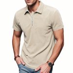 Mens Loose Corduroy Half-Zip Polo Short-Sleeve T-Shirt