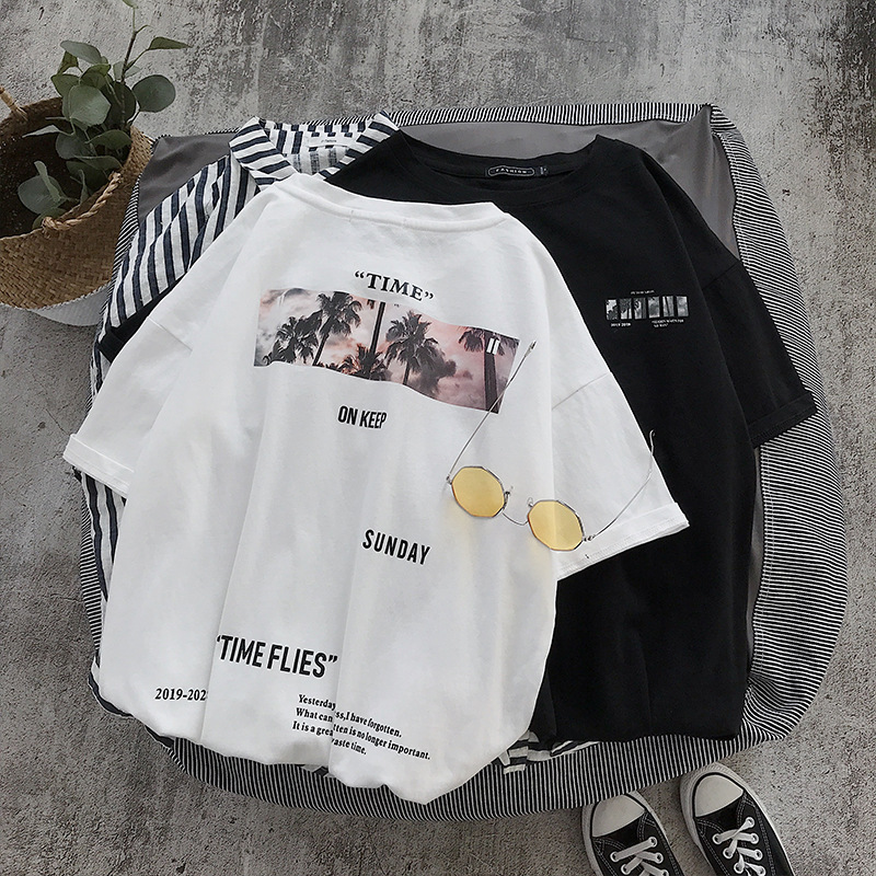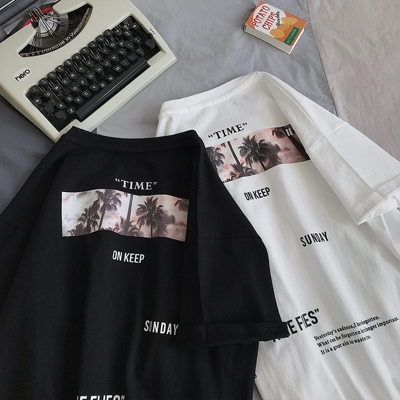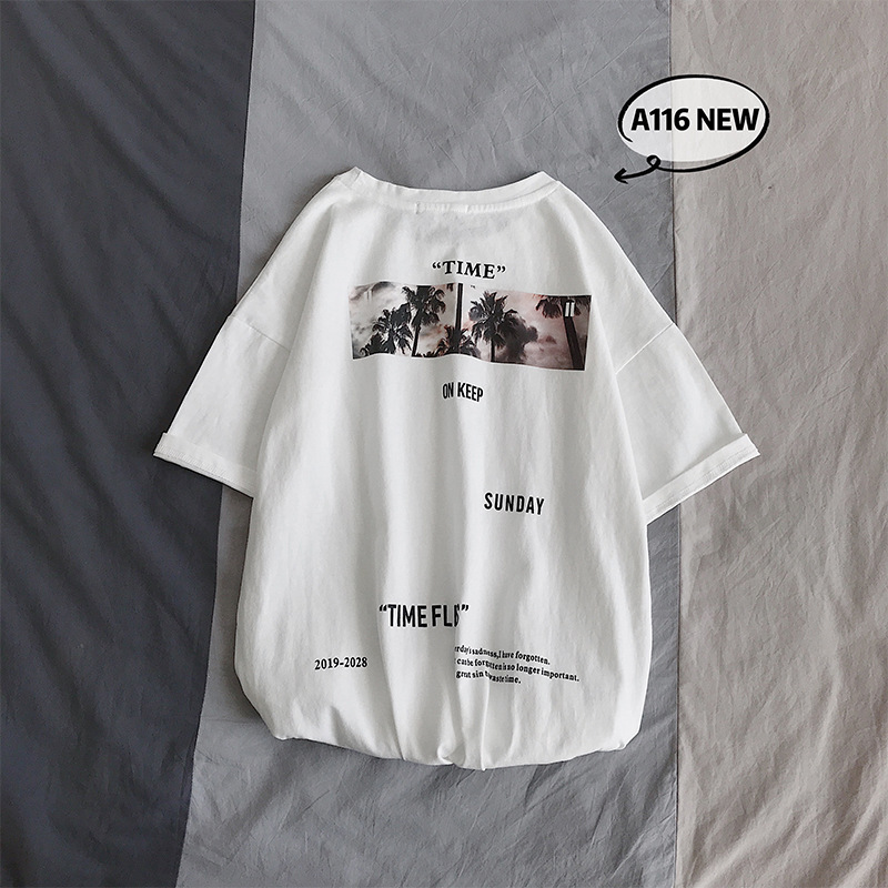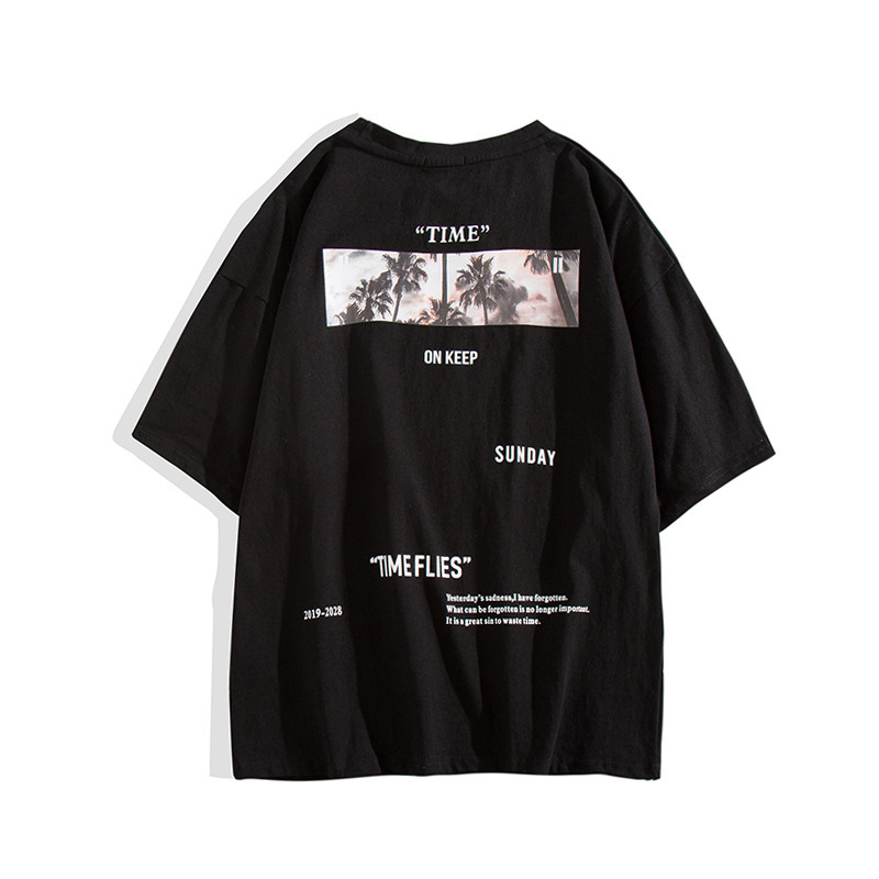 Men’s loose short sleeve top large round neck Pullover T-shirt