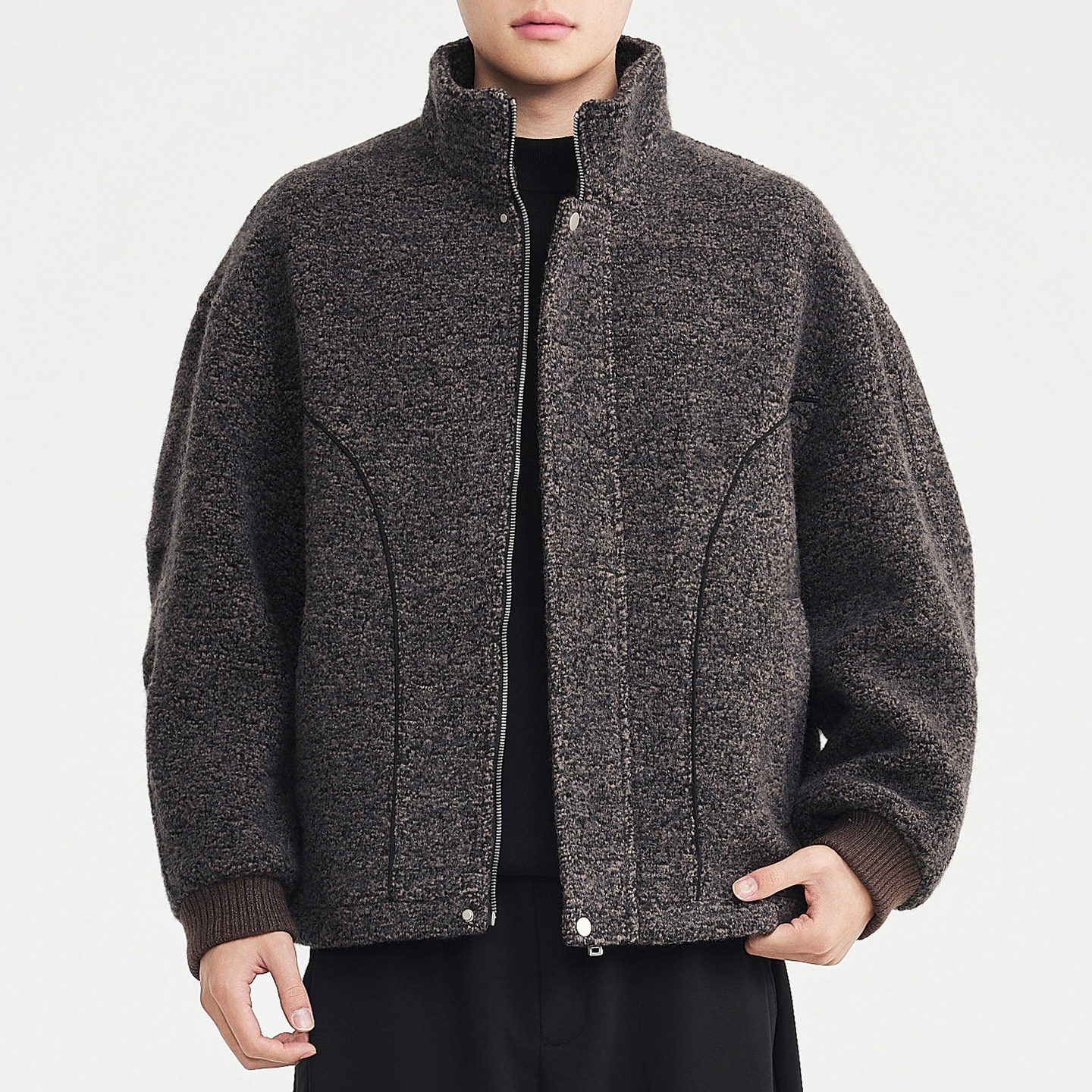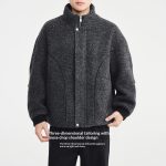Mens Mixed-Color Wool Circle-Weave Overcoat With A Stand-Up Collar