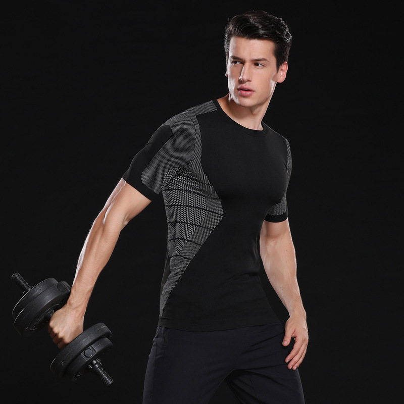 Men’s new seamless knit tight-fitting short sleeves