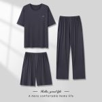 Men’s Pajamas Thin Spring And Summer Modal Short-sleeved Trousers Three-piece Home Wear Suit