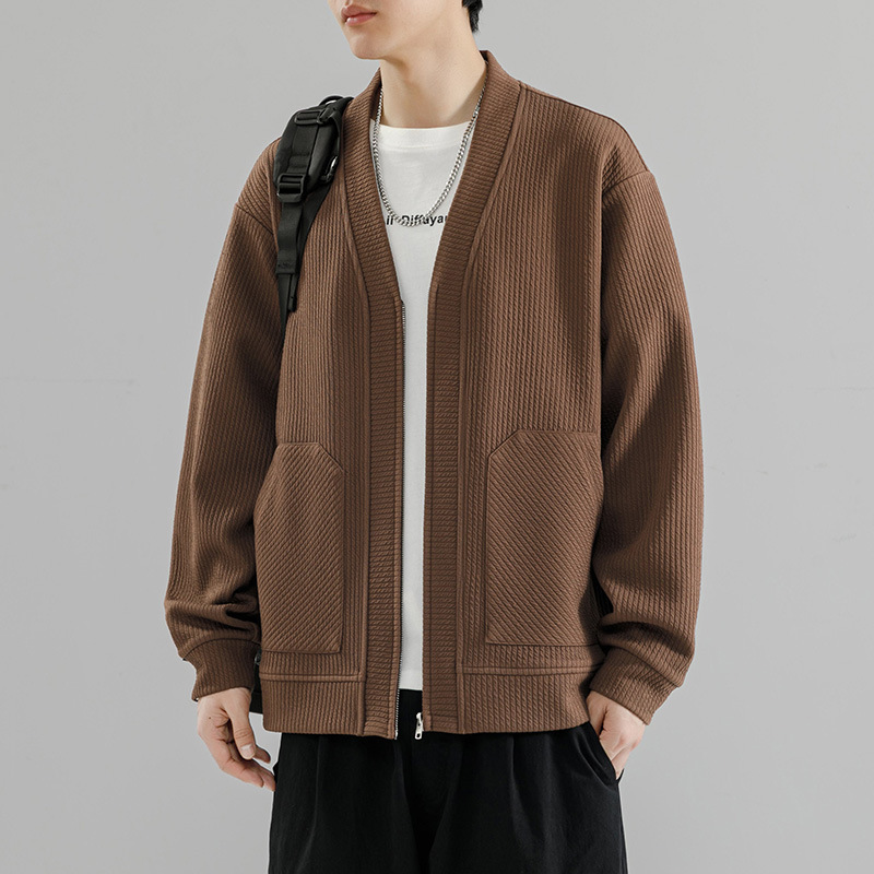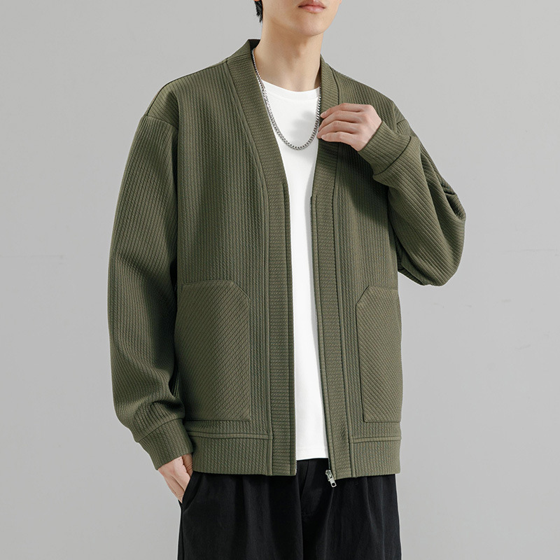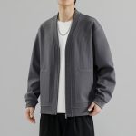 Mens Plus Size Solid Color Cardigan Zip Up Jacket