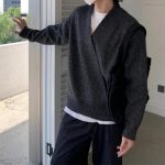 Mens Relaxed-fit V-neck Knit Jacket Versatile And Minimalist Style