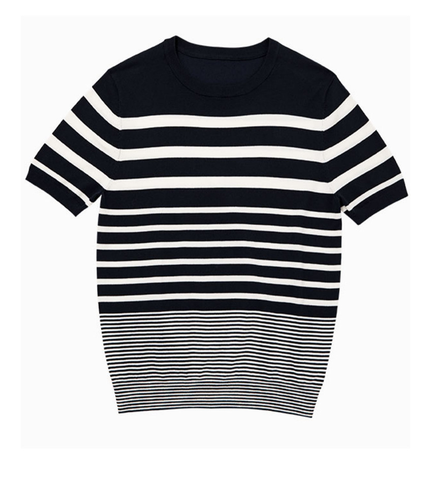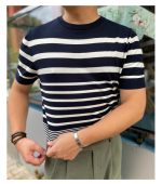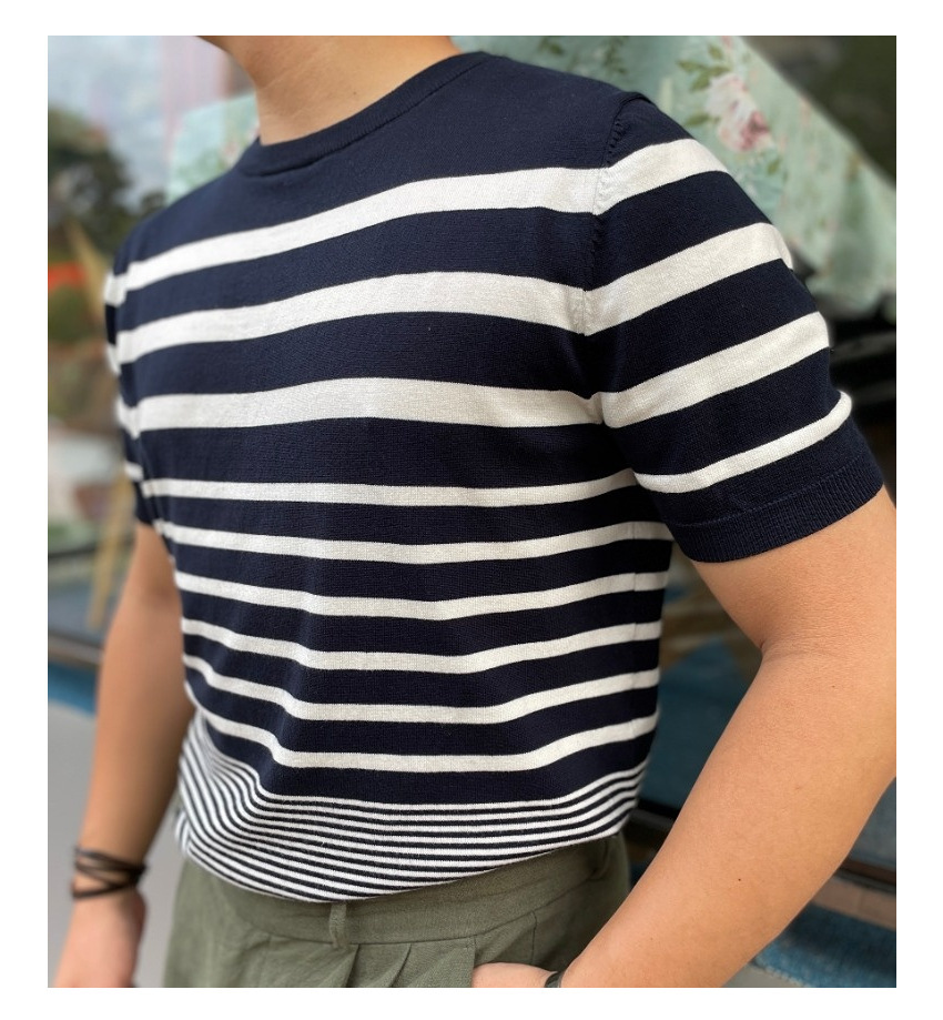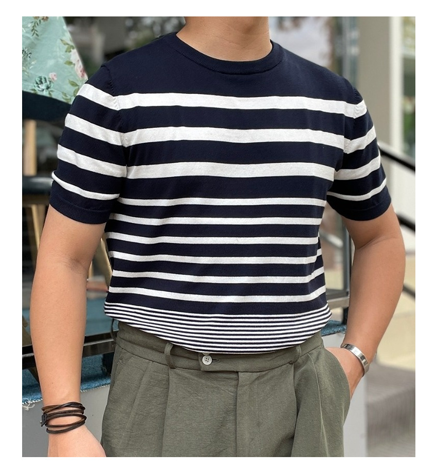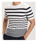 Men’s Short-sleeved Polo Shirt Retro Gradient Striped Knitted T-shirt