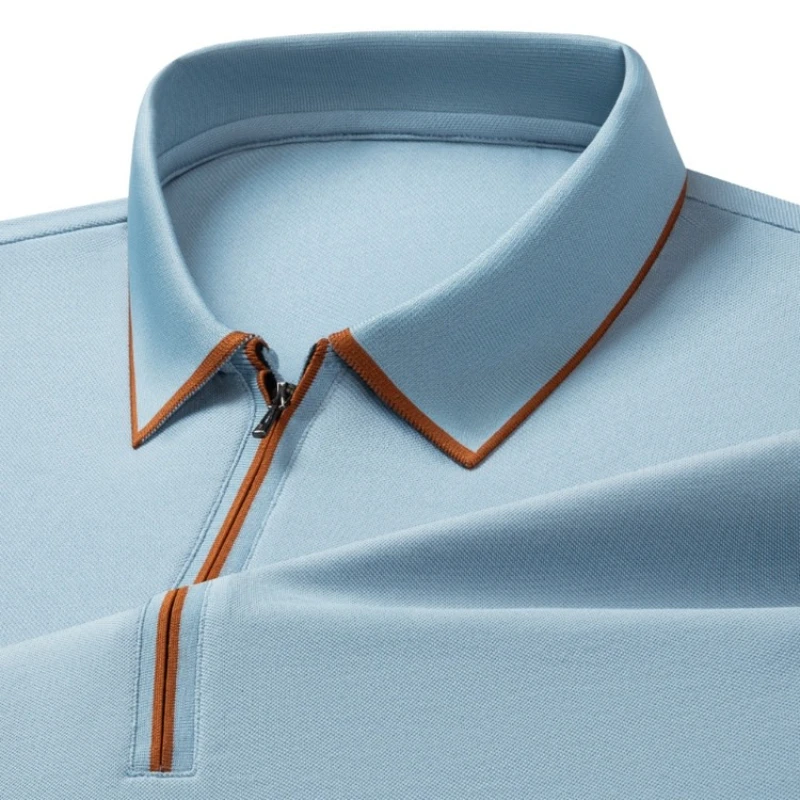 Men’s Silk Zipper Polo Shirt Short Sleeve