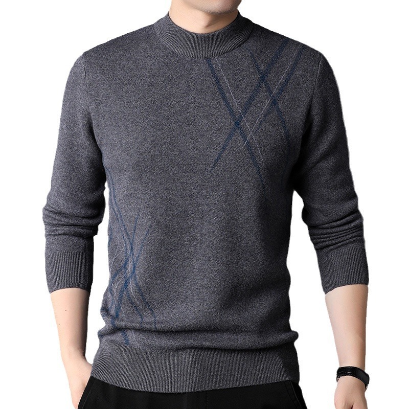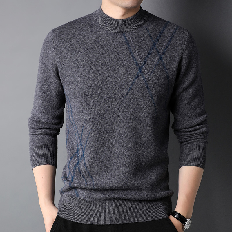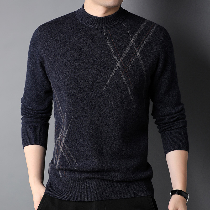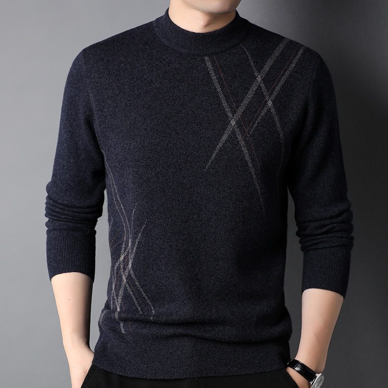 Mens Simple Versatile Long-Sleeve Striped Crew-Neck Casual Sweater