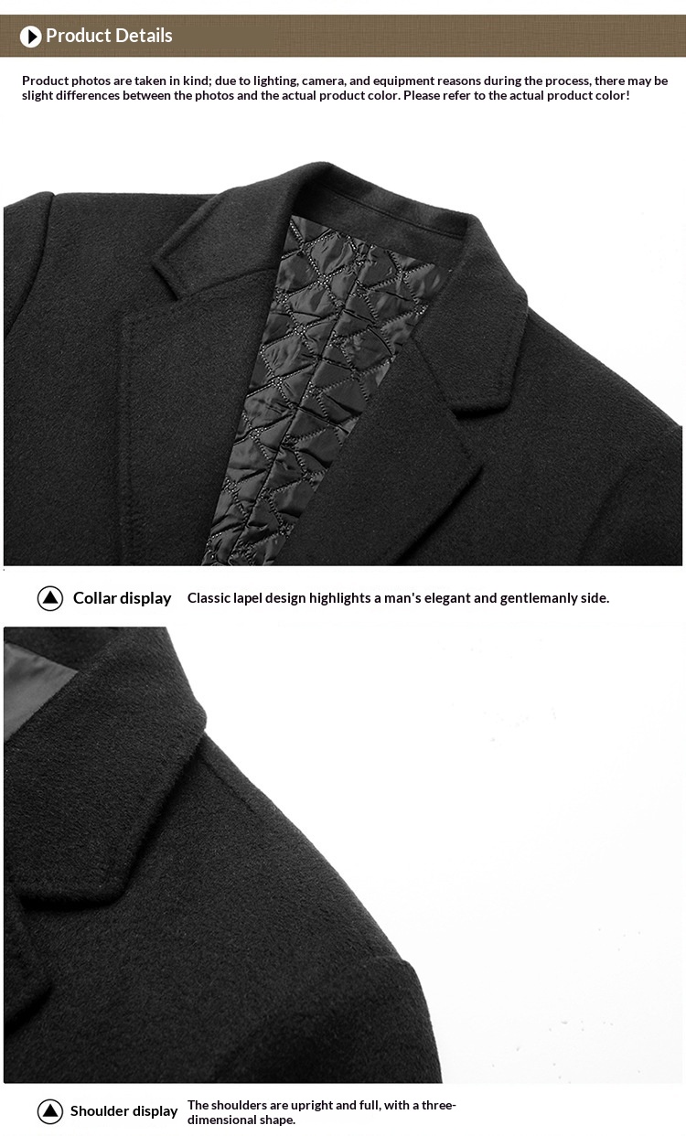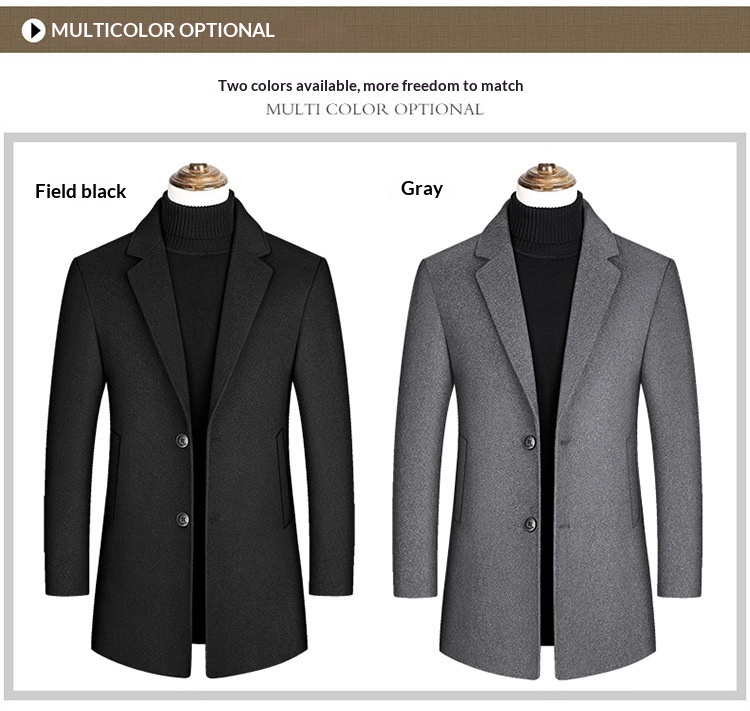 Men’s Single-breasted Wool Overcoat With Cotton Lining And Extra Thickness