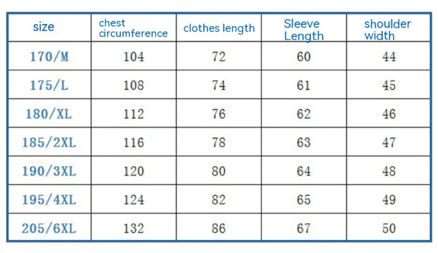 Size: S (chest circumference 108cm),M (chest circumference 113cm),L (chest circumference 118cm),XL (chest circumference 126cm),XXL (chest circumference 134cm)