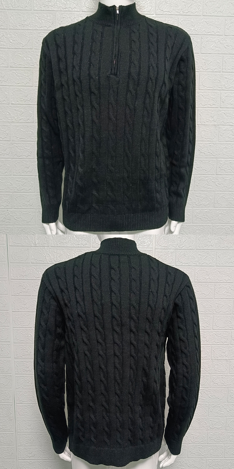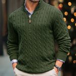 Mens Slim-fit Knitted Zip-up Mock-neck Long-sleeve Sweater